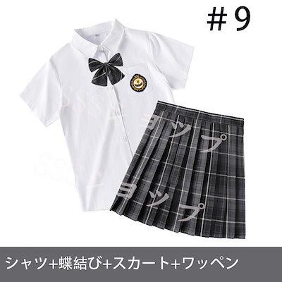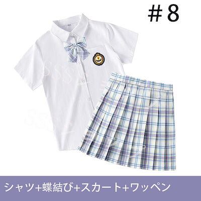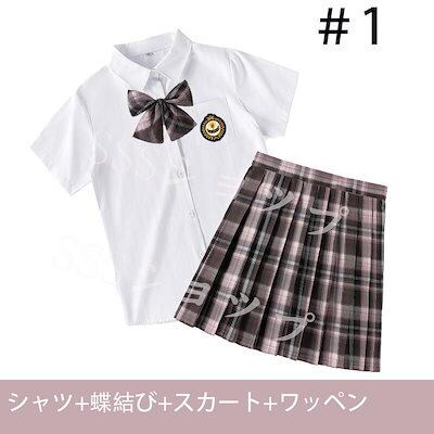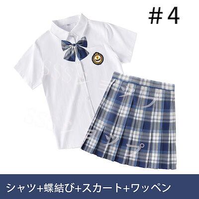 ここだけのもの制服 女子高生 高校生 スカート半 袖シャツ 蝶結び ワッペン 4点セット JK コスプレ セーラー服 コスチューム コスプレ 衣装 学生 スクール ギャル ファッション レディース チ