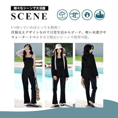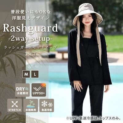 【最安値に挑戦】UVカット率 99%以上 ラッシュガード レディース セット 長袖 水陸両用 トップス パンツ ブラトップ 上下セット 脚 体型カバー 3点セット 洋服みたいな水着 ガウン ウエスト