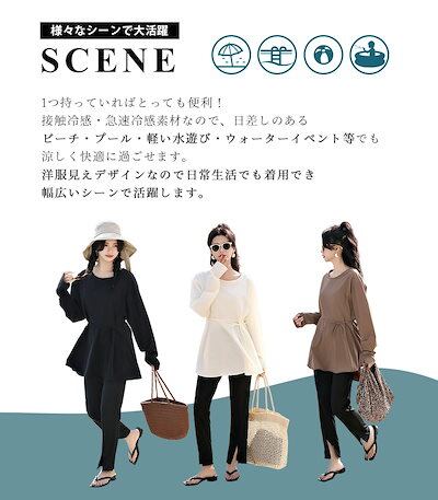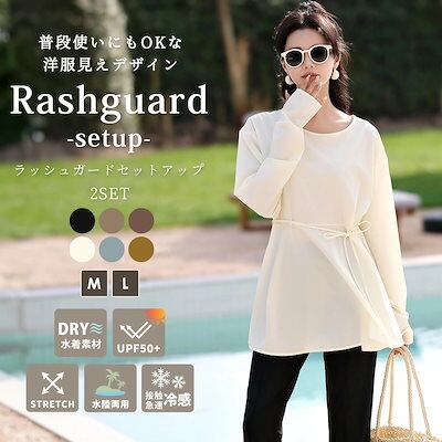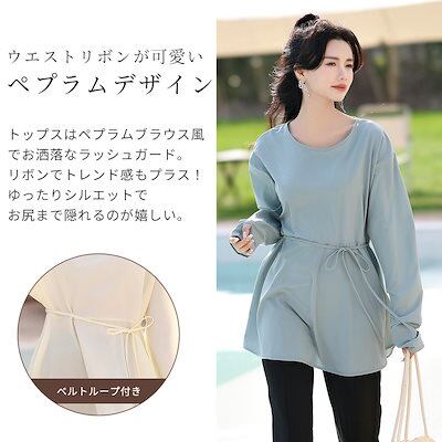 【最安値に挑戦】UVカット率 99%以上 長袖 ラッシュガード セット レディース水着 体型カバー 2点 セットアップ ペプラム リボン UPF50+ 水陸両用 Tシャツ 日焼け防止 接触冷感 紫外