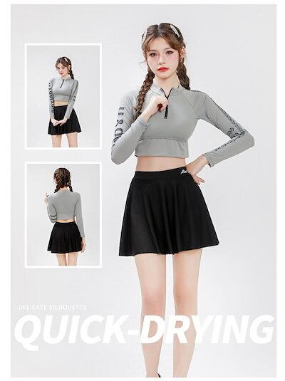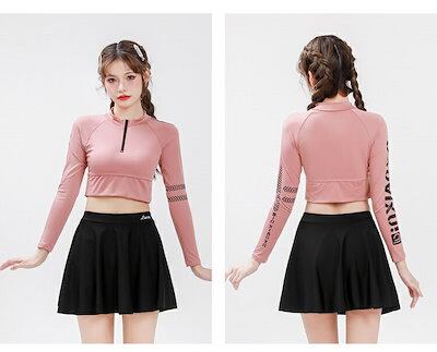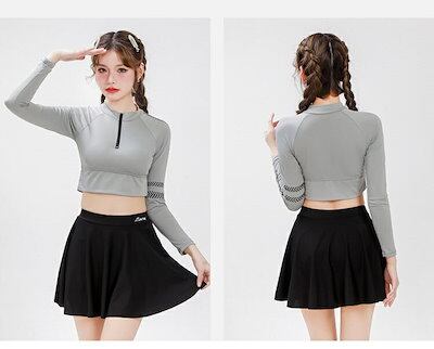 体型カバー 水着 レディース 長袖ラッシュガードセット2点上下 ショートパンツ セット バスト パット付き 軽量 体型カバー フレアスカート 露出控えめ 大きいサイズ フレア 水着 海 プール ビー