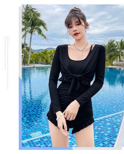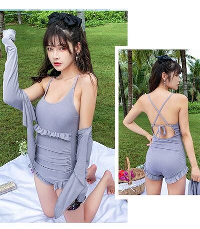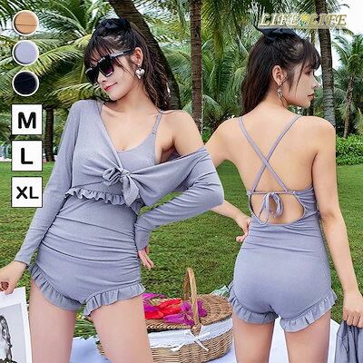 ワンピース水着 レディース 体型カバー ボレロ付き 2点セット 無地 タンキニ 水着 長袖 UVカット ワンピース 水着 レディース 水着 ハイウエスト 20代 30代 40代 50代 ブラック グ