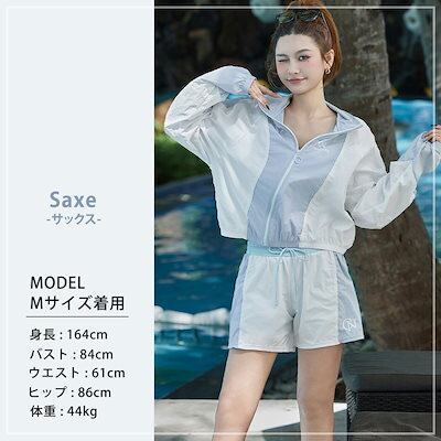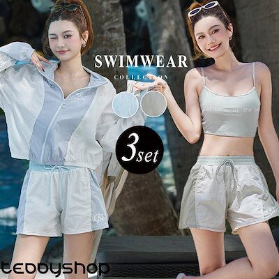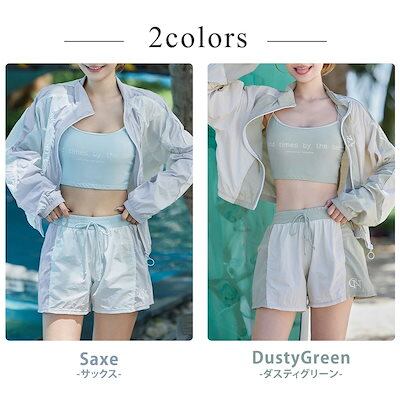 水着 レディース 体型カバー 3点セット 長袖ラッシュガード ショート丈 ジャンパー ハイネック 前開き フロントジッパー キャミソールブラ ノンワイヤー 肩紐調節 ショーツ一体型短パン ウエストゴム