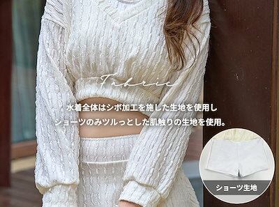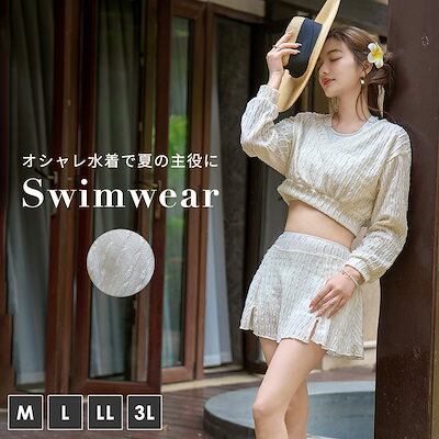 水着 長袖 トップス ブラ スカート ミニ 2way 体型カバー レディース 3点セット Vネック レイヤード 紫外線対策 スリット シボ加工 ノンワイヤー バスト 盛れる ショートパンツ一体型 二の