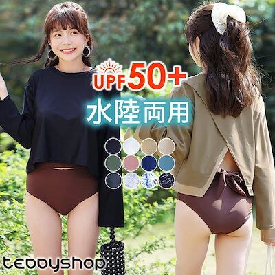 UVカット率 99%以上 ラッシュガード レディース 長袖 おしゃれ フードなし UV対策 UPF50+ 体型カバー 水陸両用水着 ビーチファッション 春 夏 秋 無地 スポーティー 薄手 ケガ防