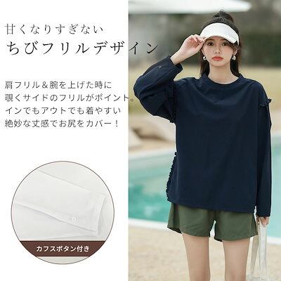 UVカット率 99%以上 接触冷感 ラッシュガード レディース 長袖 水着体型カバー 台形パンツ セットアップ 水陸両用 UPF50+ おしゃれ かわいい ひんやり フードなし 薄手 黒 白 二の腕