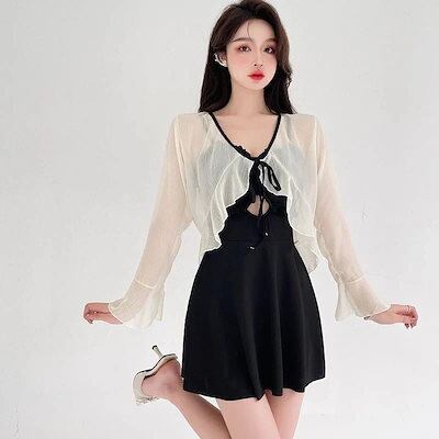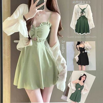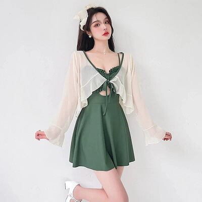 急速出荷本日限りメガ割 レディース水着 体型カバー2点セット2024新型おしゃれ長袖控えめヌーブラ ラッシュガードビキニワンピース水着温泉入浴ins純欲超仙顕痩身ラッシュガード水着