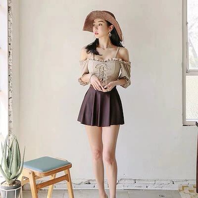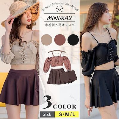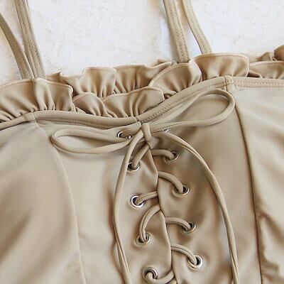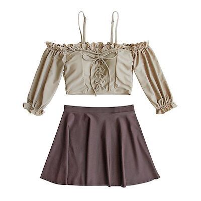 【本日のイベント】3点セット ビスチェ レディース レースアップ水着 2way ビキニ 水着 オフショルダー タン 最安値に挑戦