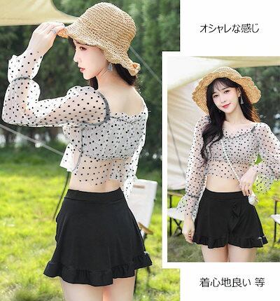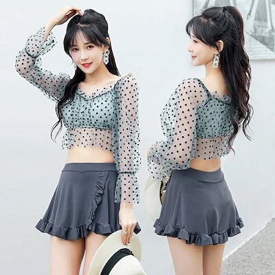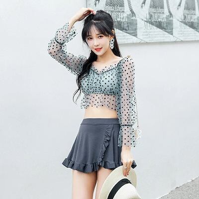【目玉商品〜超人気】シフォンビキニ 大人 トレンド 水玉柄2点セット 大きいサイズ 体型カバー 水陸両用 長袖 水着 タンキニ フリル セパレート パンツ 可愛い レディース 海外旅行 ビーチウェア