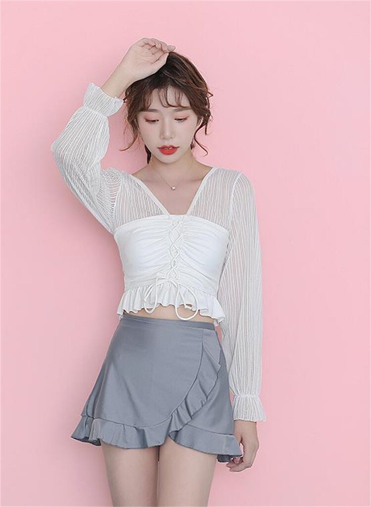 きちんと感をGET 長袖 温泉 秋 冬 水着 ショーシン スモールブレストギャザー★★ 水着 レディース おしゃれ ビーチ ビキニ リゾート プール 体型カバー スリム 可愛い インスタ映え セパレート 露出控えめ 盛れるハイウエスト 韓国 日焼け対策 競泳 スイムウェア日焼け防止 スタイルアップ 着痩せ | gizshop