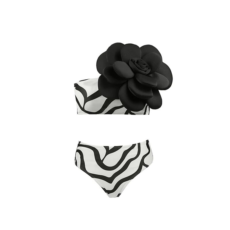 Zafuaz 女性のためのセクシーなフローラルビキニカバーアップ、ソリッド3Dフラワー水着、高級水着、女性のためのビーチウェア、夏の水着スカート、2022 セパレート水着 ビキニ レディース T240618201808_07 | gizshop