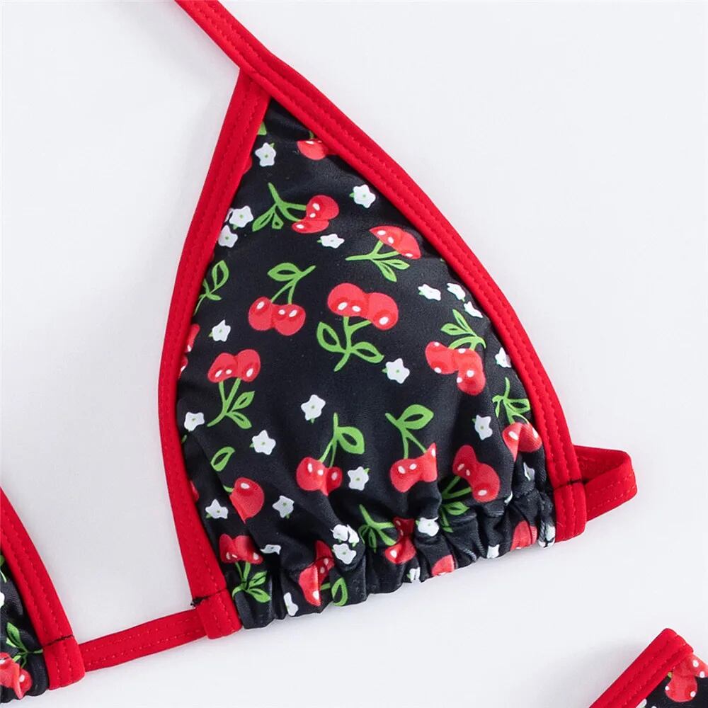 女性のセクシーなチェリーフローラルプリントビキニセット、トライアングルホルターストリング、ハイカット水着、ビーチウェア、2022 セパレート水着 ビキニ レディース T240618202001_01 | gizshop