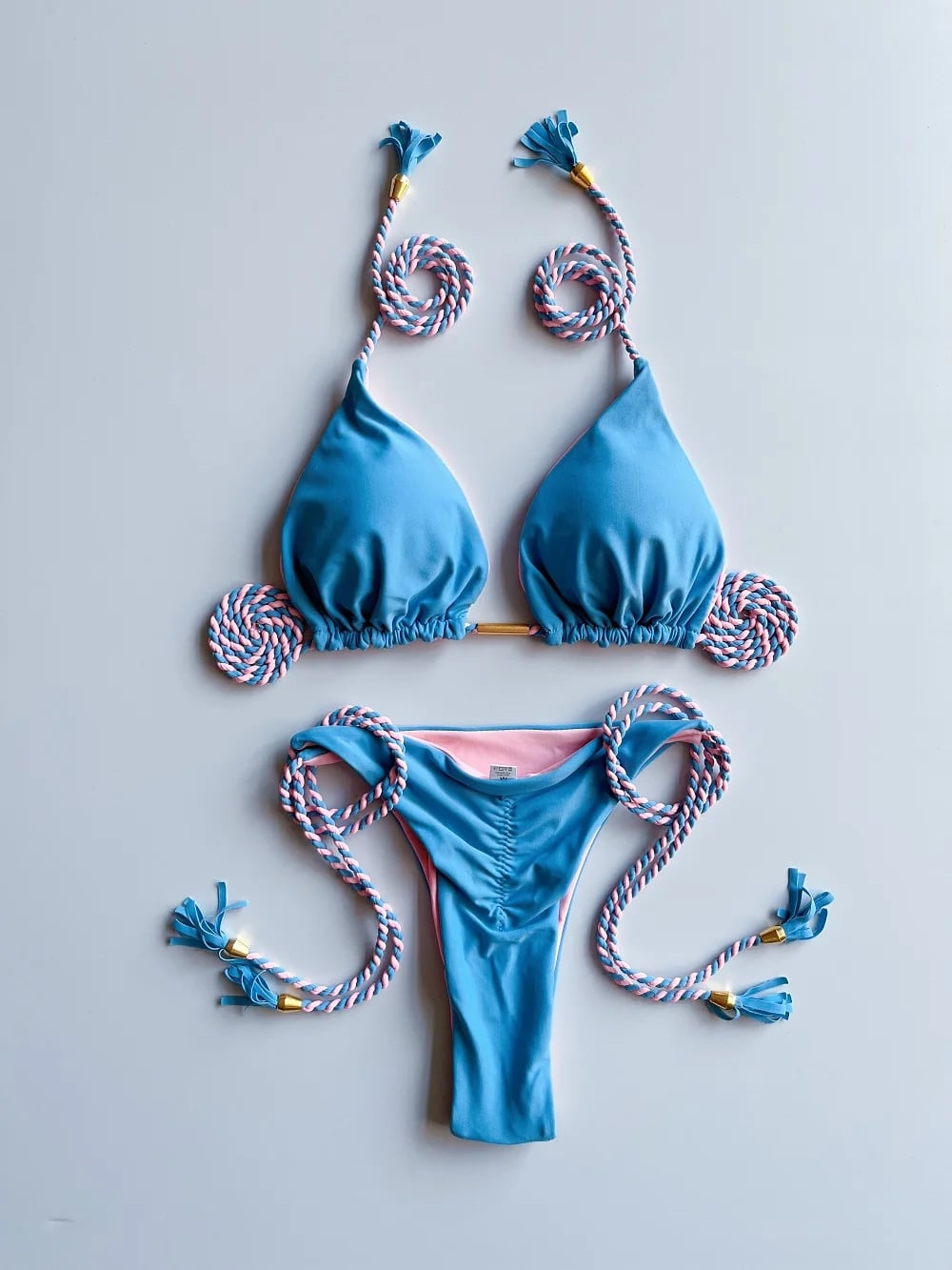 女性用ブラックトライアングルビキニセット,ひも水着,セクシーな包帯水着,ビーチウェア,2個,2023 セパレート水着 ビキニ レディース T240618202240_01