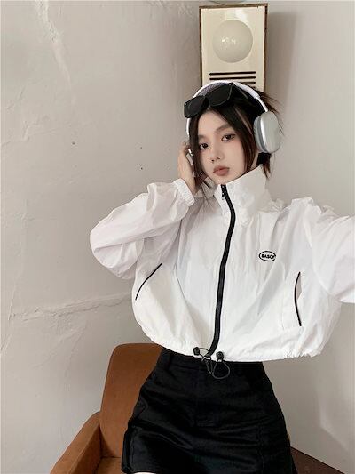 uvカットパーカー夏長袖ブラウス 涼しい 薄い氷を感知する 紫外線対策UVカット ショート かわいい フル ブルゾン トップスアウター ショート丈 スタンドショートお出かけハイストリートアウター | gizshop