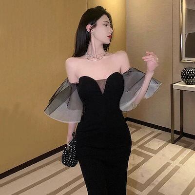 ワンピース ドレス レディース夏新作 フレンチロングスカート?国 パーティードレス 新作 セクシー 快適です ブラック ワンピース チューブトップブラ ドレス ワンピース発表会 二次会 演奏会 | gizshop