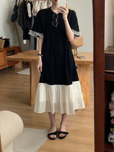夏 涼しげシャツワンピ 話題サテンスカート 半袖ワンピース韓国ファッション ワンピース ドレス 半袖 4