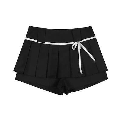 脚魅せミニスカート 夏 韓国ファッション美脚ミニスカート 話題サテンスカート 秋 ファッション レディース キュロットスカート スカート JK風 プリーツスカート リボン ボトムス | gizshop