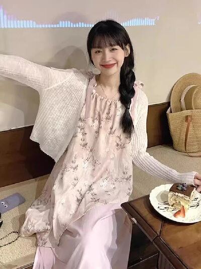 話題サテンスカート2wayワンピース キャミワンピース韓国 ファッション ワンピース ドレス結び目の花柄キャミソールワンピース女性の夏の優しげな雰囲気が不規則な偽2枚の痩せ見えA字ロングスカート | gizshop