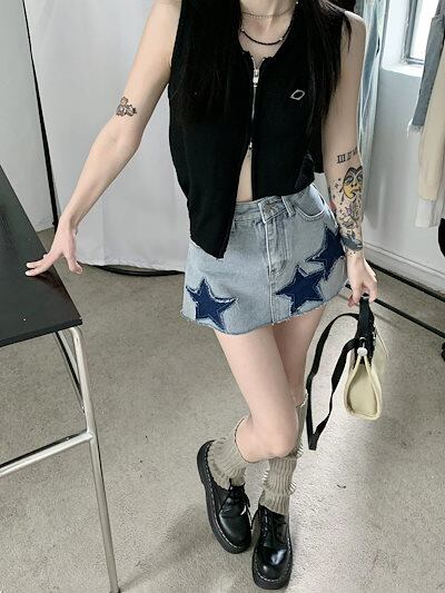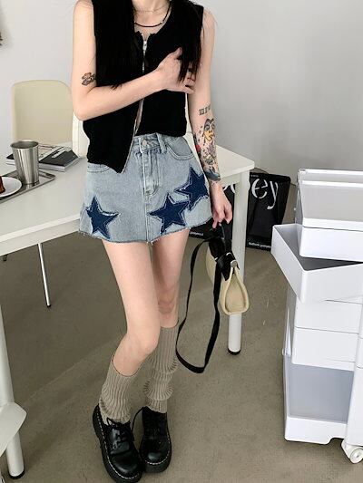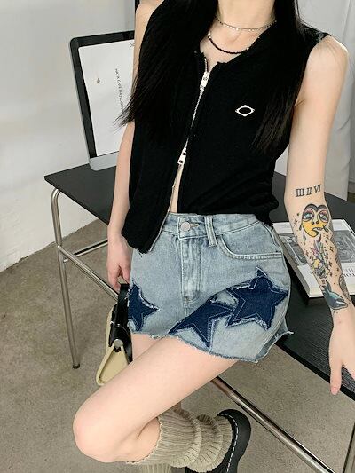 話題サテンスカートミニスカートスカート制服 脚魅せミニスカートハイウエスト スター パッチワーク カットオフ デニムスカート ミニ丈 ミニスカート ボトムス スタイルアップ 韓国 フレンチ カジュアル | gizshop