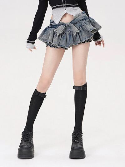 話題サテンスカートミニスカートスカート制服 脚魅せミニスカート純欲風甘辛ins蝶ネクタイカウボーイ半身スカート防光ズボンスカート Aラインスカート 韓国ファッション Y2k 地雷系 脚魅せミニスカート | gizshop