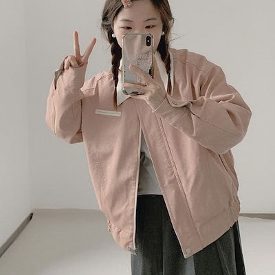 春人気ボアアウター新作 レディースアウタージャンパーブルゾン 新作 ピンク カジュアル ゆるい トップス 切り替え 開襟 人気アウター