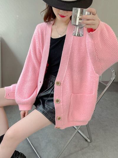 ベーシックニット 韓国系ビッグ版セーターコート女2023新型高級感だるさ風秋冬ニットボタンカーディガンモチモチ
