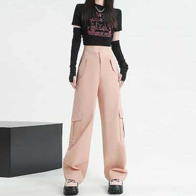 【お勧め商品】 ポケット付き カーゴパンツ ゴムウエスト レトロ 春夏 スウェットワイドパンツ デーパードパンツ レディースロングパンツ ジャージ スラックス ズボン 「W.L」