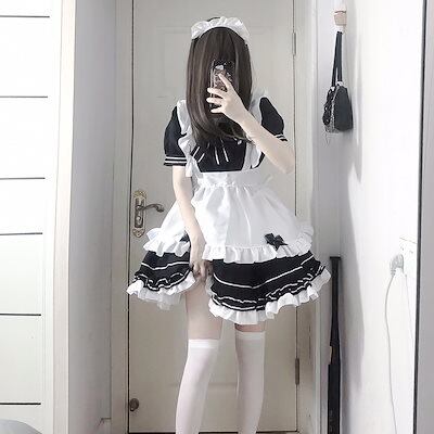 日系メイドモノクロロリータメイド服日常小料理娘コスプレコスプレ衣装