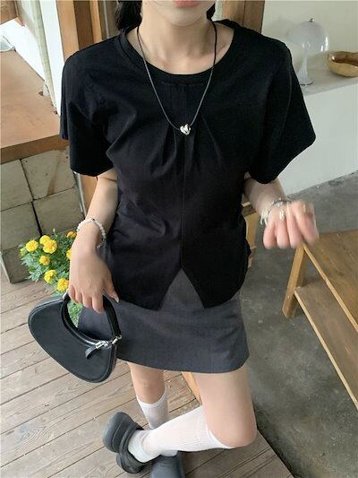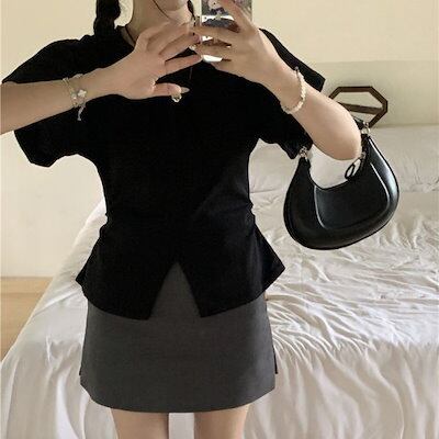 ファッション気質スーツニッチスプリット半袖Tシャツ女性2024夏Aライン半身スカートショートスカート2点セット