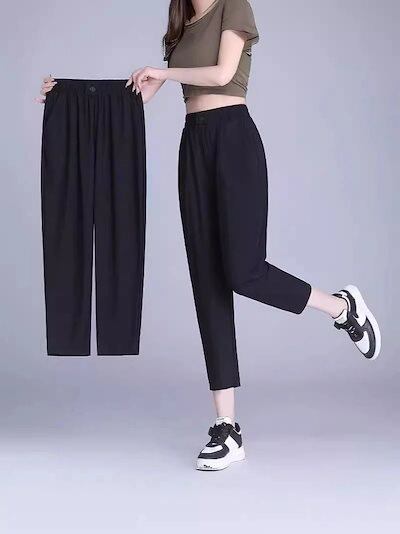 アイスシルク ハーレムパンツ夏 薄手 通勤 カジュアル 気質 ハイウエスト スーツ ハイウエストワイドパンツ