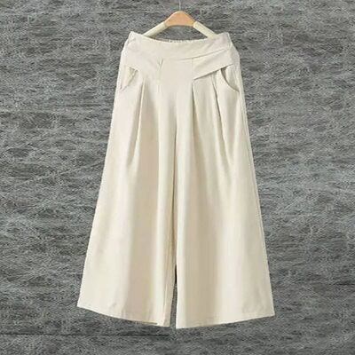 韓国ファッション薄手 柔か軽か手触り良く爽か涼しゆったりら楽ちんガウチョパンツ 9分丈 綿麻 ワイドパンツ