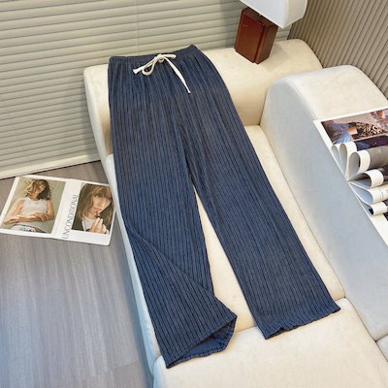 2024 新作 夏 ハイウエスト 美脚 ストレート垂れ感 レディース ズボン ストライプ柄 着やせ 百掛け 涼しいワイドパンツ