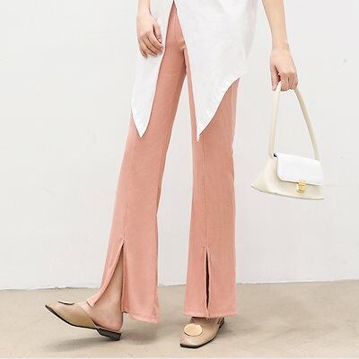 2024 新作 夏 スリット パンツ スラックス スリム 綿 お肌に優しい 細身 レディース パンツ スウェットパンツ ソフト ウエストゴム リラックスパンツ スエットワイドパンツ | gizshop