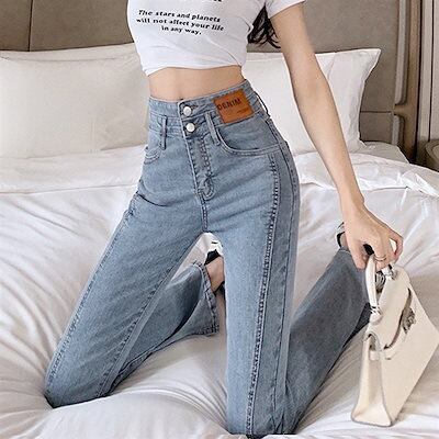 2024 日韓 新作 スリット デニムパンツ 薄手 ハイウエスト ?力 スリミング 大きめサイズ デニムパンツ 着痩せ カジュアル 韓国ファッションスキニーパンツ 脚長効果! ワイドパンツ | gizshop
