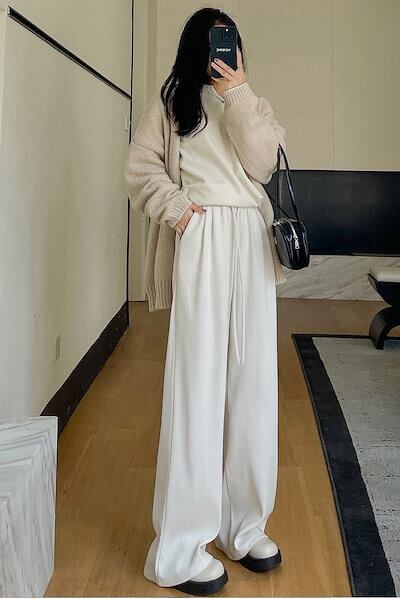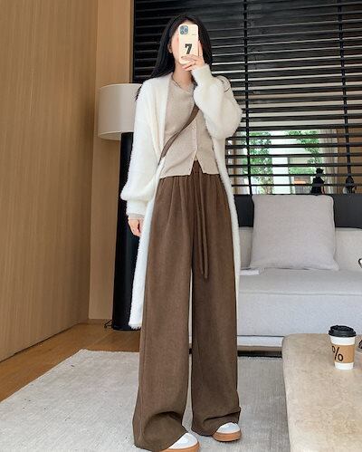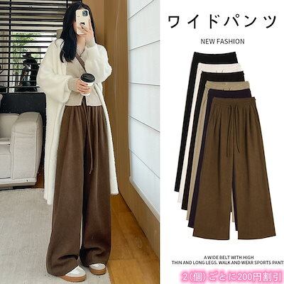コーデュロイパンツ ストレートパンツ プリーツ ゆったりパンツ 無地 ハイウエスト ポケット ルーズ ロングパンツ 韓国ファッションスキニーパンツ 脚長効果! ワイドパンツ