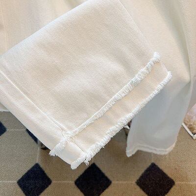 春秋新作 ガウチョパンツ ハイウエスト ジーパン やせて見える 着痩せ あちこち 垂下感 白ストレートパンツ ワイドパンツ レディース
