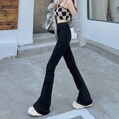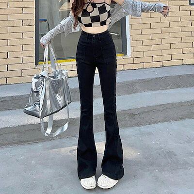 春秋新作 ガウチョパンツ ジーパン ブラック ハイウエスト 着痩せ 身を修める ラッパズボン ワイドパンツ レディース