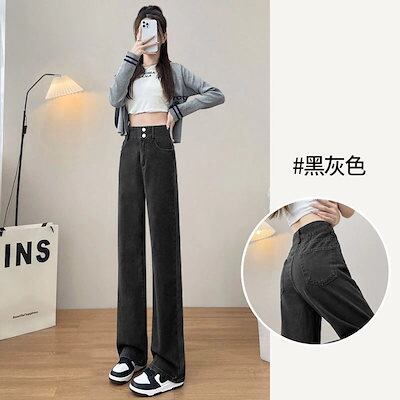 春秋新作 ガウチョパンツ アメリカ 着痩せ ストレートシリンダ ジーパン ハイウエスト やせて見える ゆとりがある ワイドパンツ レディース