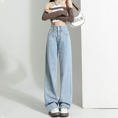 デニムワイドパンツ 秋新作 薄い色のジーンズ 着痩せ ストレートパンツ ゆとりがある 垂れ感ワイドパンツ 韓国ファッション 百掛け やせて見える