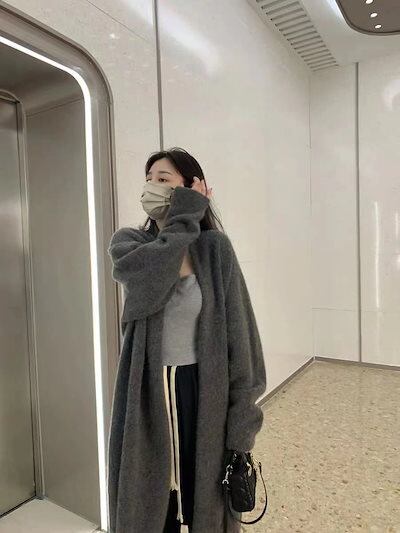 カーディガン 秋アウター 韓国 2024秋冬 新作 グレー ロングカーディガン ニット セーター 着痩せ ニットカーディガンアウター レディース セーター トップス カーディガン ゆったり アウター | gizshop