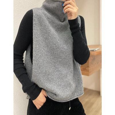 ニットベスト レディース チョッキ トップス ハイネック ノースリーブ ゆったり プルオーバー ベスト ジレー セーター 秋コーデ 秋物 カジュアル