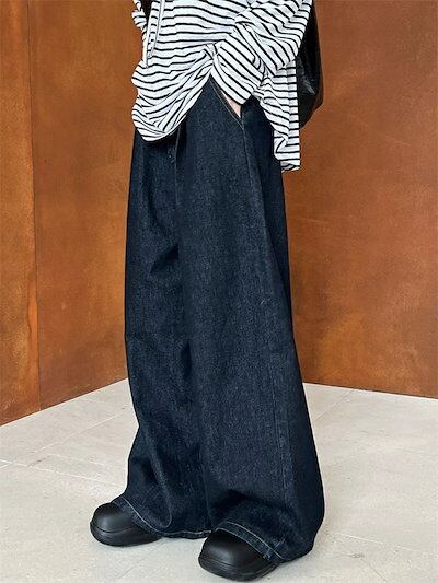 パンツ デニムパンツ ワイドパンツ レディース ロング ロングパンツ ワイド ワイドデニム 綿100% コットン 100 大きいサイズ ゆったりロングデニム ボトムス ズボン 無地 バギー 体型カ | gizshop