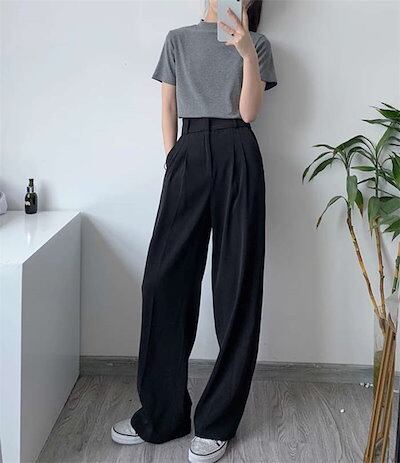 タックワイドパンツ レディース 春 秋 ボトムス ワイド パンツ イージーパンツ タック スラックス ワイドパンツ ロング スーツパンツ 美シルエット オリジナル 美脚 ハイウエスト マキシ丈 上品