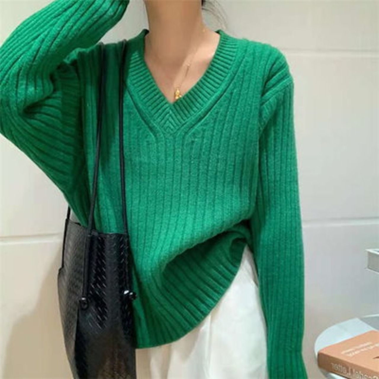 ニットセーター レディース 秋冬 トップス 長袖 おしゃれ 上品 Vネック ゆったり リラックス プルオーバー ニットソー リブニット ゆるニット 着回し 普段使い インナー オシャレ 韓国風 大人