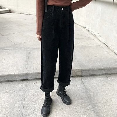 ワイドパンツ パンツコーデュロイ レディース ストレートパンツ コーデュロイパンツ コーデュロイ ストレート 春 秋冬 ウエストゴム ボトムス ズボン ポケット付き 大きいサイズ ゆったり 体型カバー | gizshop