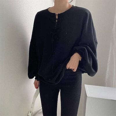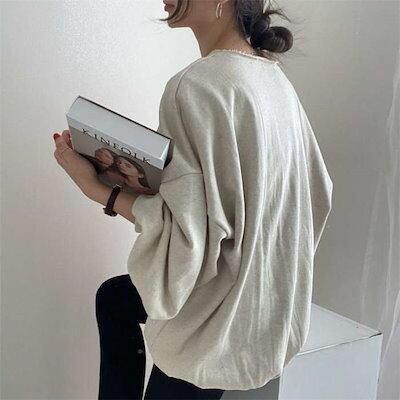スウェット レディース きれいめ トレーナー 秋 春 長袖 キーネック Tシャツ カットソー 長袖 大きめ ゆったりトップス 体型カバー シンプル カジュアル 大きいサイズ ゆるっと ビッグシルエット | gizshop