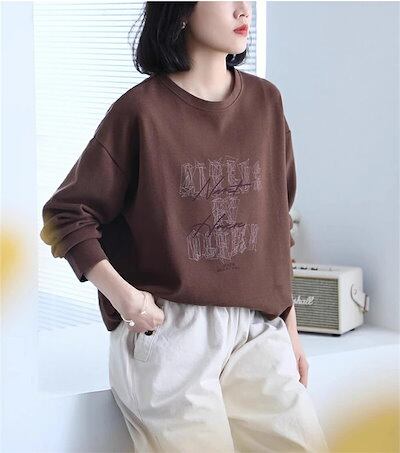 トレーナー レディース 春 秋 長袖 トレーナー クルーネック Tシャツ プルオーバー トップス パーカーTシャツ カットソー スウェット 大きいサイズ ドロップショルダー ビッグシルエット ベーシッ | gizshop