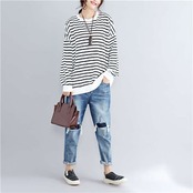 ボーダービッグプルオーバー スウェット プルオーバー レディース トップス カットソー 春 スウェット トレーナー ボーダー 丸首 長袖 パーカー 大きいサイズ ゆったり 綿混 コットン混 春秋 プル | gizshop