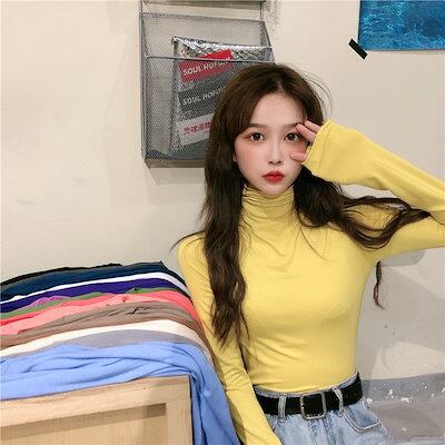 ボトムシャツ女性タイトなトップス薄いインナー女の子の長袖Tシャツの新しい韓国語バージョン