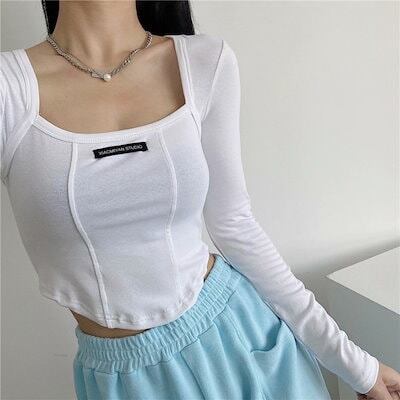 長袖Tシャツ レディース スクエアネック インナー タイト 女 ボトムス シャツ トップス