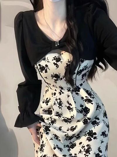 キャミソール ワンピース サブ ツーピース セット プレミアム感 ロング 花柄 ワンピース レディース
